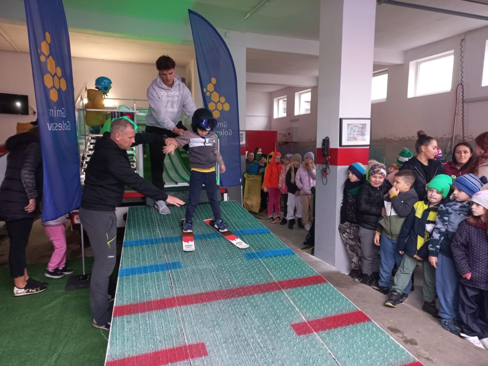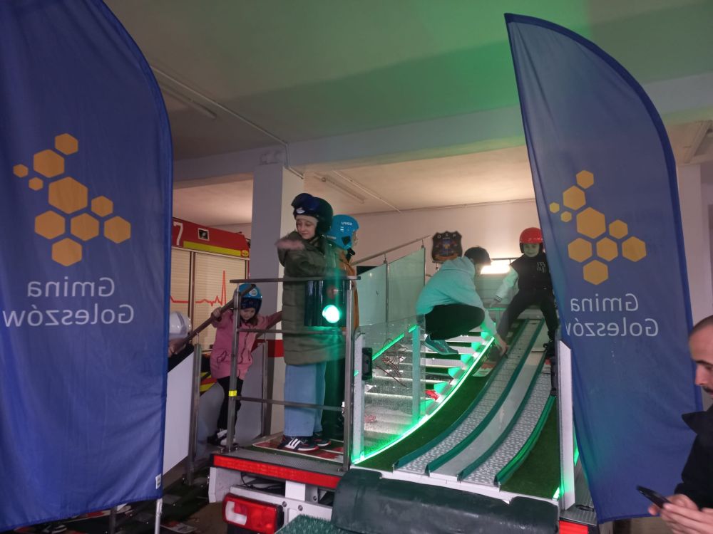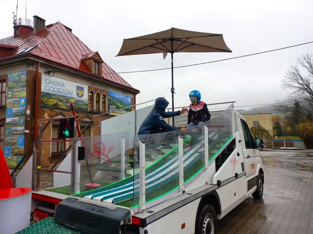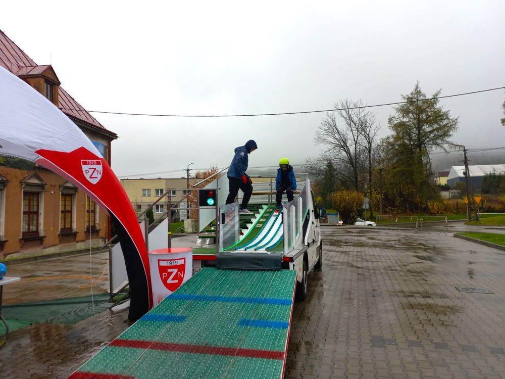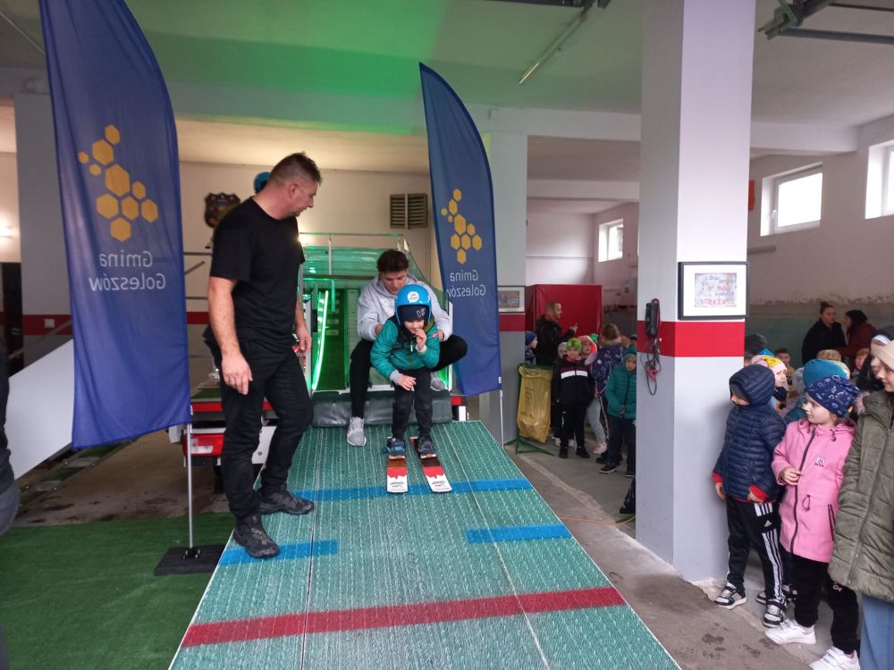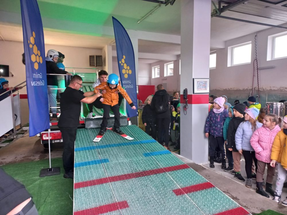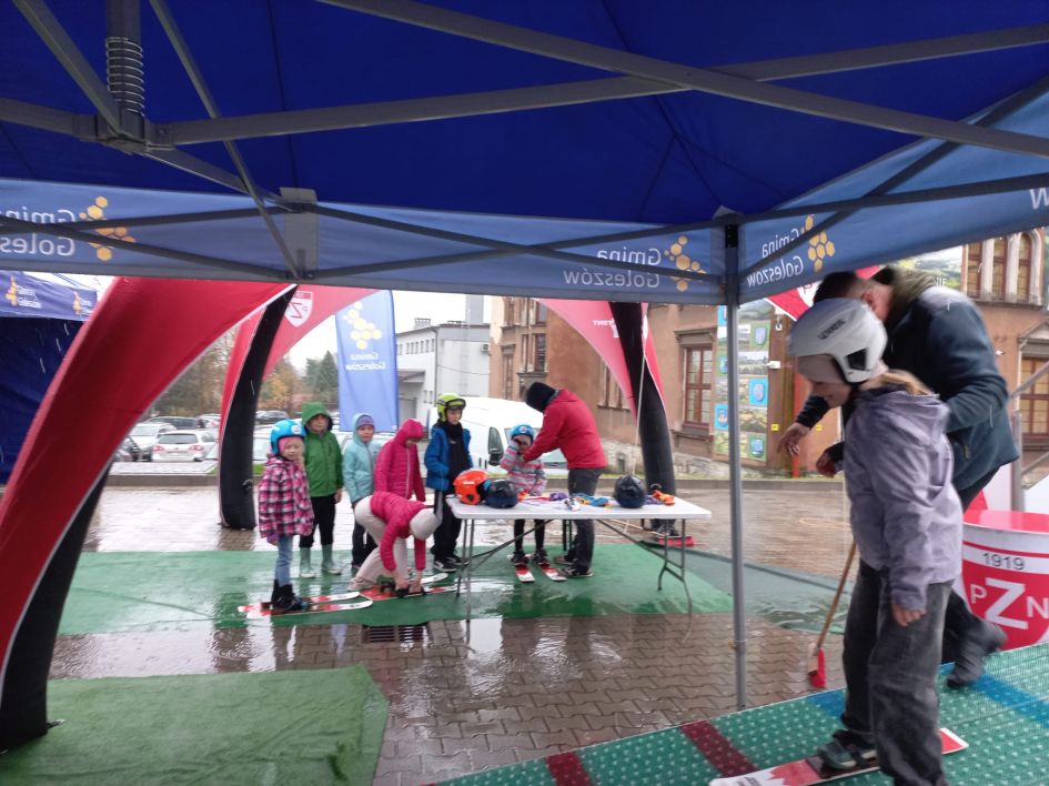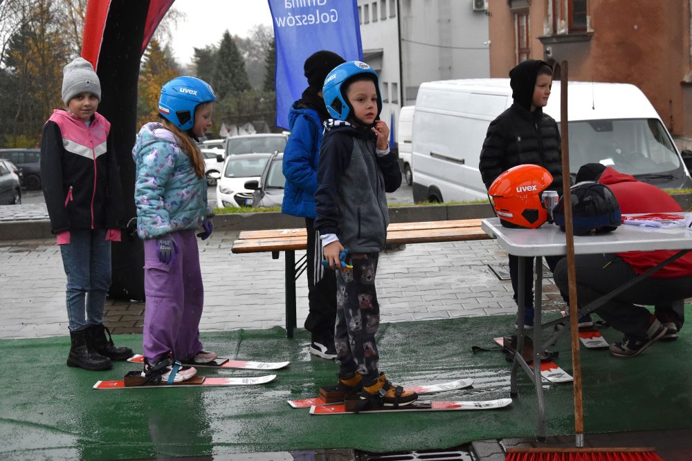 W poniedziałek, 3 listopada, na parkingu przy Urzędzie Gminy w Goleszowie odbyły się wyjątkowe zajęcia sportowe w ramach programu Akademia Lotnika – Sztuka Latania. Pomimo ulewnego deszczu dzieci ze wszystkich czterech gminnych szkół podstawowych z entuzjazmem stanęły na starcie mobilnej skoczni narciarskiej.