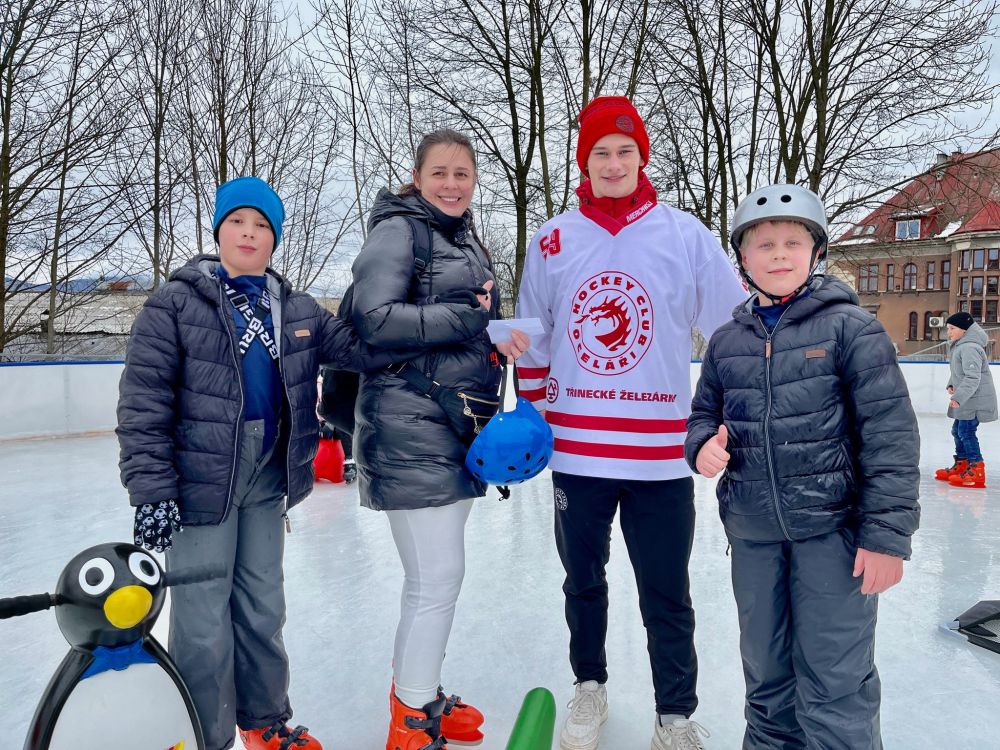 Wśród atrakcji zaplanowanych na niedzielny półmetek ferii znalazła się wizyta Wiktora Makuły, a więc 18-letniego, ambitnego hokeisty, który opowiedział uczestnikom o swojej pasji do hokeja, kulisach treningów oraz ciekawostkach związanych z tą widowiskową dyscypliną sportu. Mieszkający w Cieszynie zawodnik na co dzień reprezentuje barwy juniorskiej drużyny HC Oceláři Třinec oraz występuje w Reprezentacji Polski juniorów w hokeju na lodzie, z którą wywalczył m.in. złoty medal Mistrzostw Świata dywizji IB. Jest również najlepiej punktującym zawodnikiem polskiej kadry, co zaowocowało tytułem najlepszego gracza reprezentacji Polski podczas Mistrzostw Świata do lat 20 dywizji IB. Po rozmowie na tafli lodowiska hokeista aktywnie włączył się w organizację sportowych konkurencji, a następnie chętnie rozdawał autografy i pozował do pamiątkowych zdjęć.