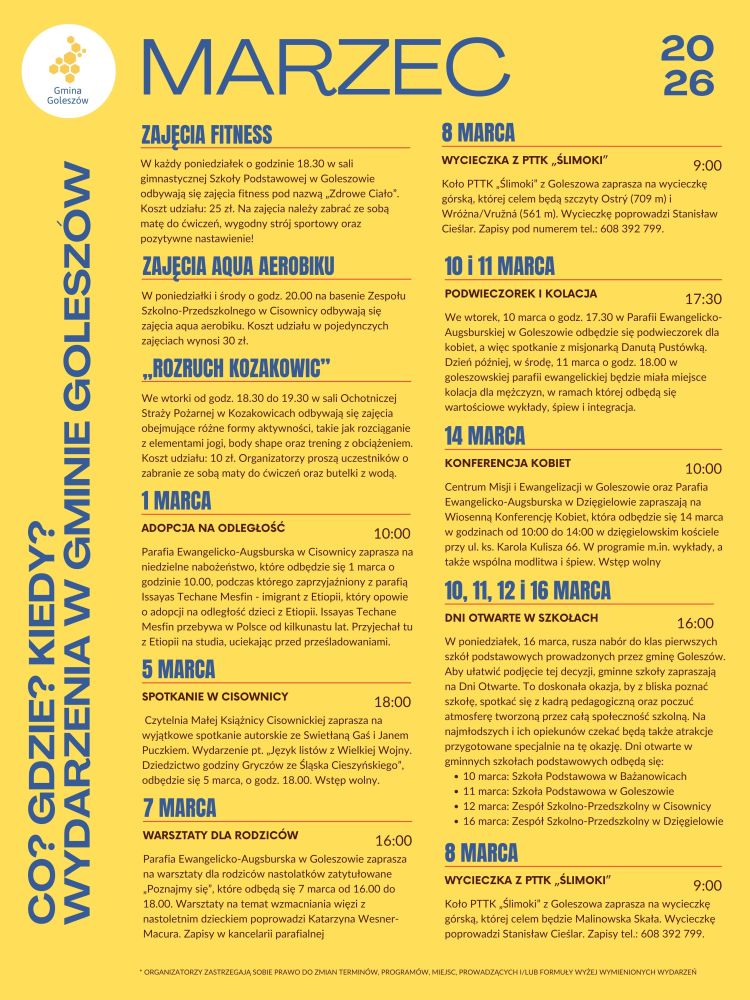 Co? Gdzie? Kiedy? Wydarzenia w gminie Goleszów. Marzec 2026