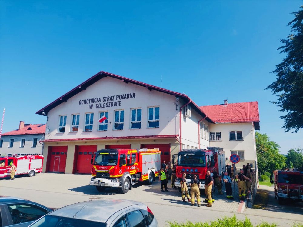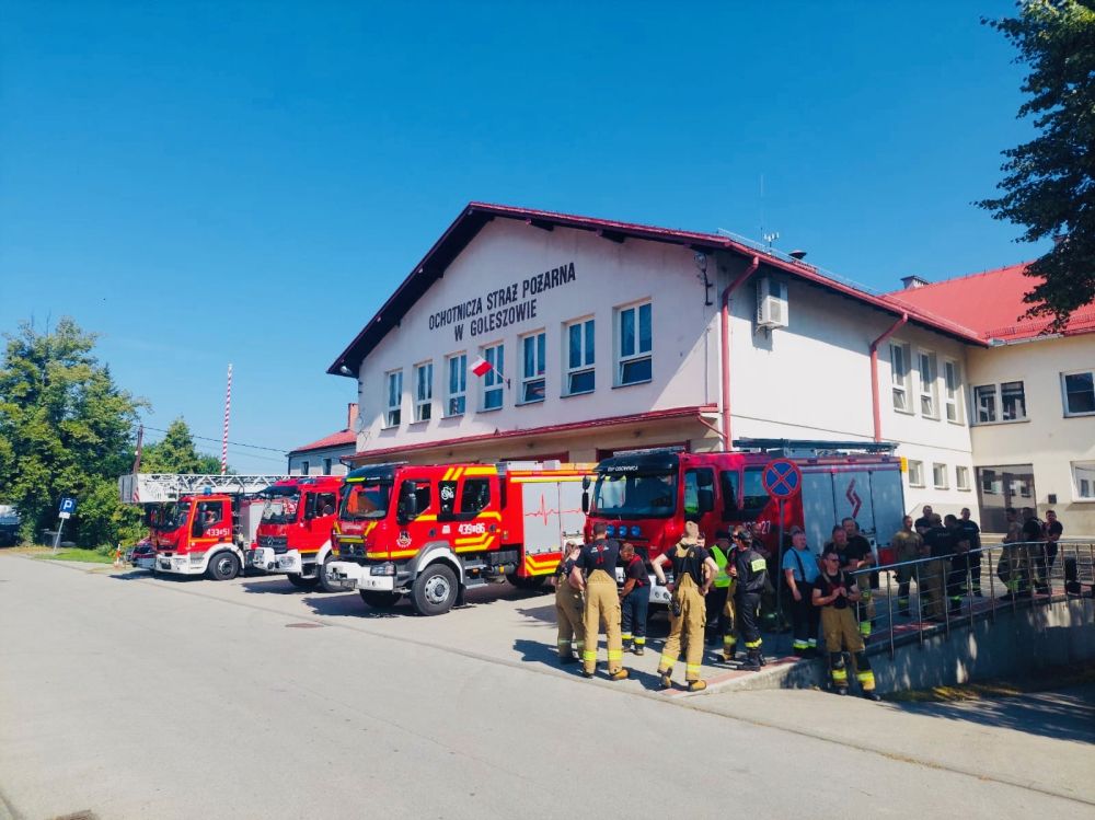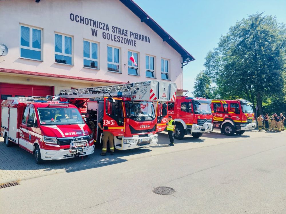 W poniedziałek, 21 lipca, przed strażnicą Ochotniczej Straży Pożarnej w Goleszowie odbyła się koncentracja zastępów strażackich, rozpoczynająca ćwiczenia służb ratowniczych realizowane na terenie zakładów MDM w Bażanowicach.