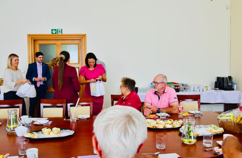 Goście z Niemiec przyjechali na zaproszenie Sylwii Cieślar – wójt gminy Goleszów, aby wziąć udział w Powiatowo-Gminnych Dożynkach oraz Dniach Gminy Goleszów. - Kolejna wizyta naszych przyjaciół z Niemiec stanowi namacalny dowód na to, że wciąż chcemy współpracować i wzajemnie się wspierać, organizując wspólne inicjatywy, w tym m.in. wymianę młodzieży. Dzisiejsze spotkanie w Urzędzie Gminy w Goleszowie było dla mnie okazją do osobistego poznania nowego burmistrza naszej partnerskiej gminy, który wyraził nadzieję na dalszy rozwój dotychczasowej współpracy między naszymi gminami – komentuje wójt gminy Goleszów.