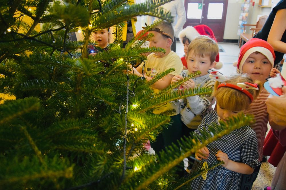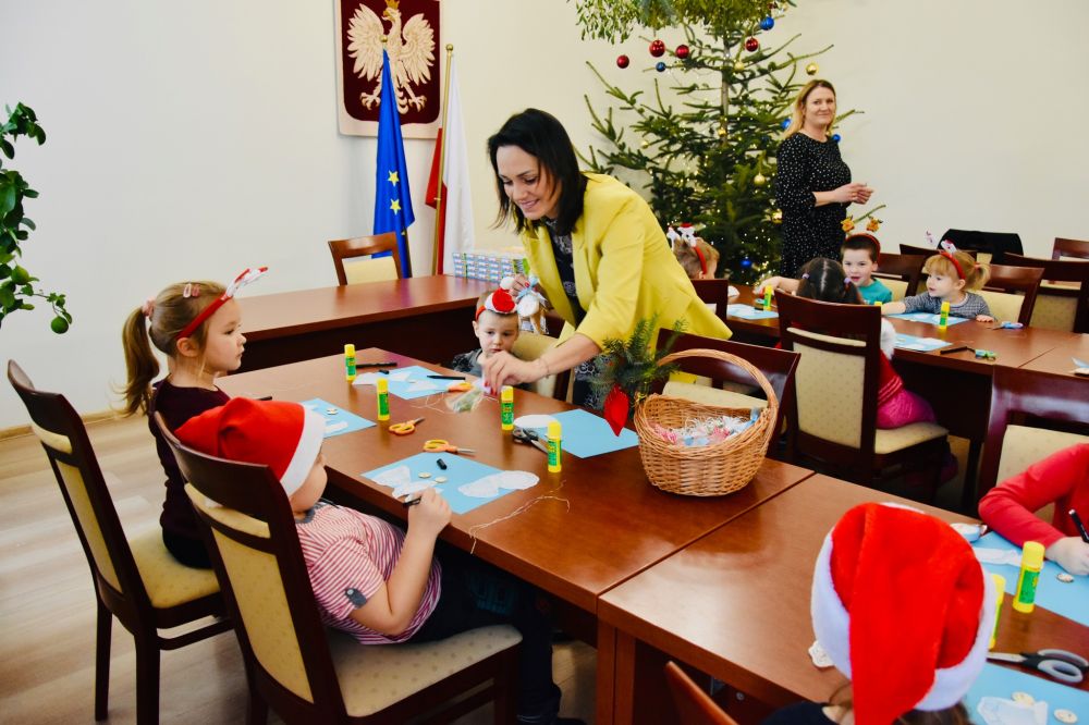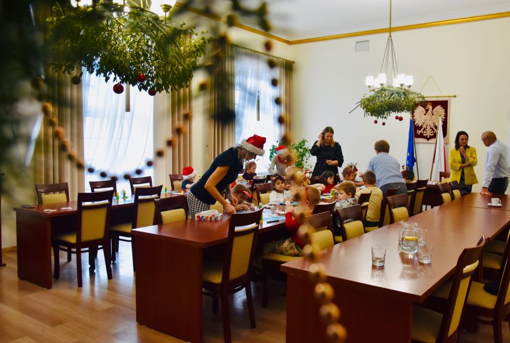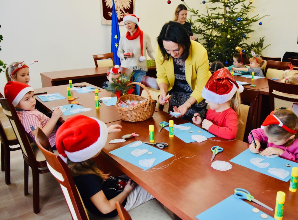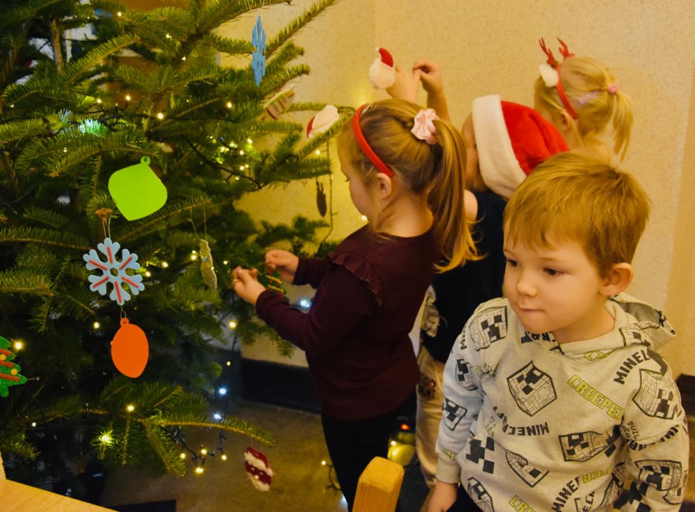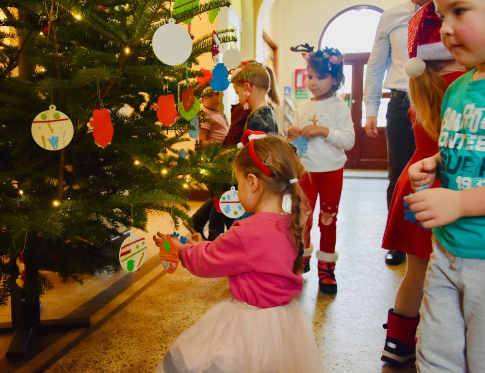 Efekt wspólnego strojenia choinki jest zachwycający i już dziś wprowadza wszystkich odwiedzających urząd w ciepły, świąteczny nastrój. Tradycja ta pokazuje, jak wiele radości mogą przynieść proste, wspólne działania i jak pięknie najmłodsi potrafią odmienić przestrzeń publiczną. W nagrodę za wspaniale wykonaną pracę młodzi artyści otrzymali drobne upominki oraz słodki poczęstunek. Najważniejsza okazała się jednak radość i entuzjazm, które towarzyszyły całemu wydarzeniu, pozostawiając w sercach dzieci piękne, świąteczne wspomnienie.