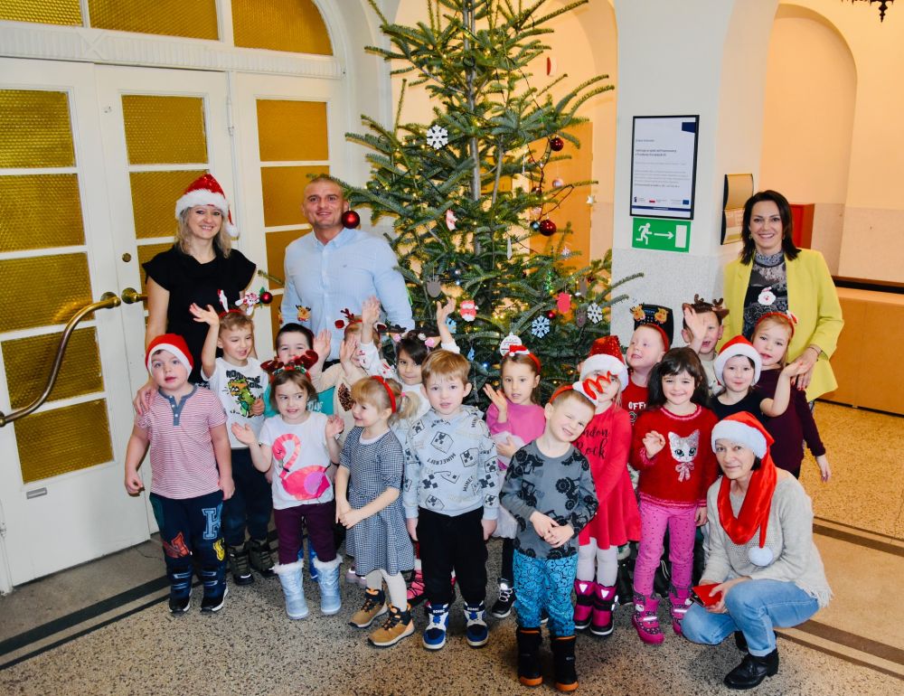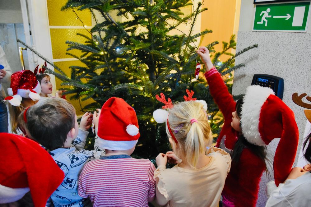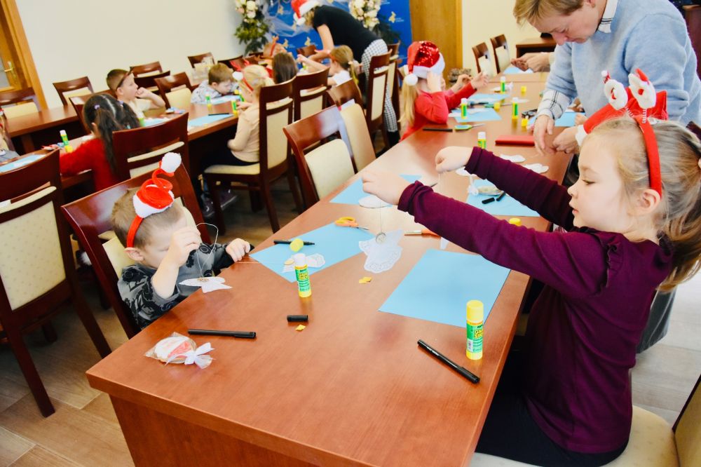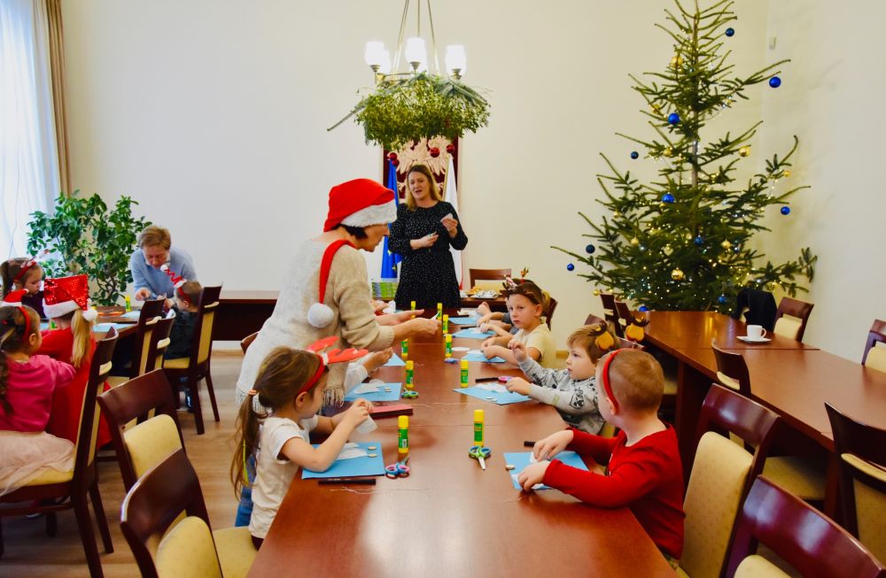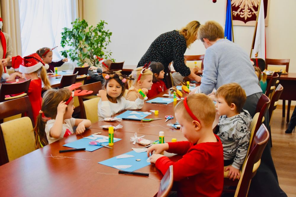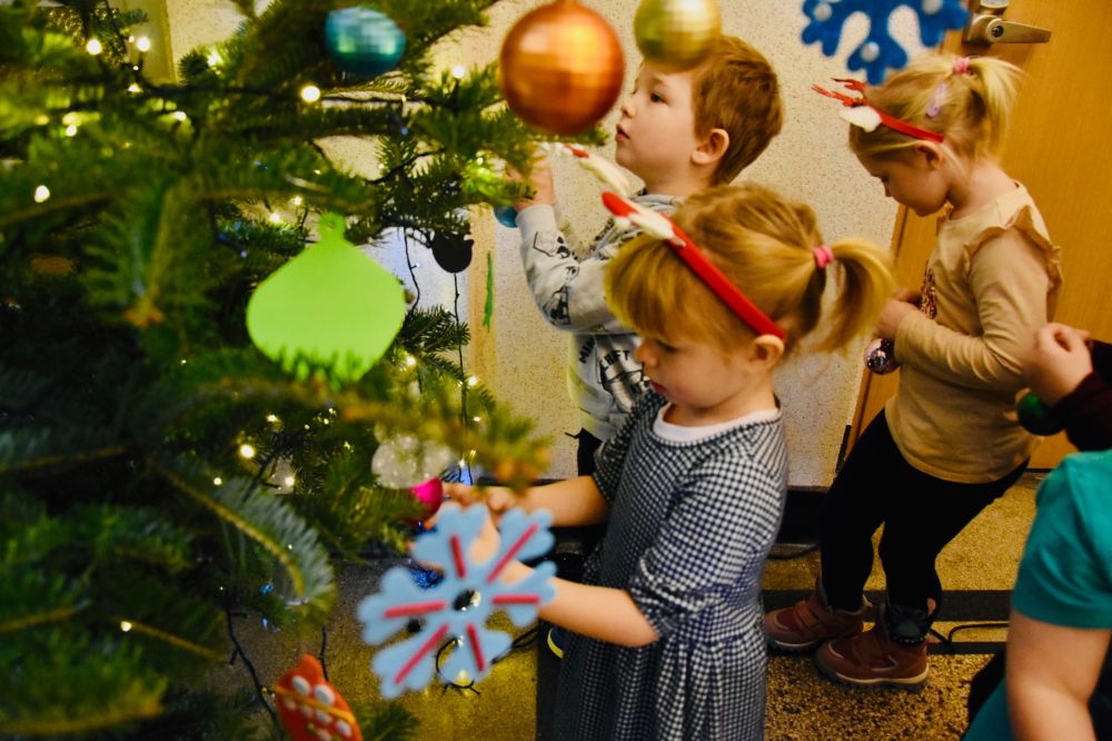 Efekt wspólnego strojenia choinki jest zachwycający i już dziś wprowadza wszystkich odwiedzających urząd w ciepły, świąteczny nastrój. Tradycja ta pokazuje, jak wiele radości mogą przynieść proste, wspólne działania i jak pięknie najmłodsi potrafią odmienić przestrzeń publiczną. W nagrodę za wspaniale wykonaną pracę młodzi artyści otrzymali drobne upominki oraz słodki poczęstunek. Najważniejsza okazała się jednak radość i entuzjazm, które towarzyszyły całemu wydarzeniu, pozostawiając w sercach dzieci piękne, świąteczne wspomnienie.