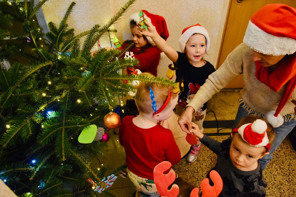Tym razem zaszczytną rolę małych dekoratorów objęły 4- i 5-latki z grupy „Biedronek” z Zespołu Szkolno-Przedszkolnego w Cisownicy. Maluchy, pełne energii, uśmiechu i twórczego zapału, przygotowały ozdoby, które nadały choince niepowtarzalny charakter, zmieniając na chwilę salę sesyjną goleszowskiego urzędu w barwną pracownię świątecznego rękodzieła.
