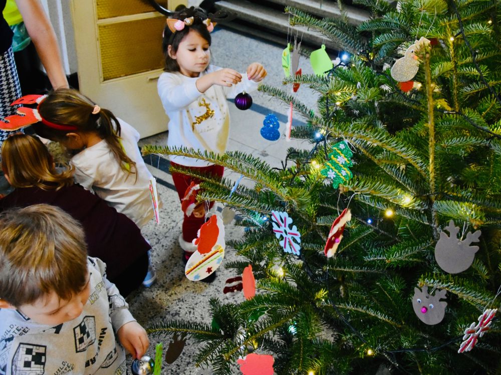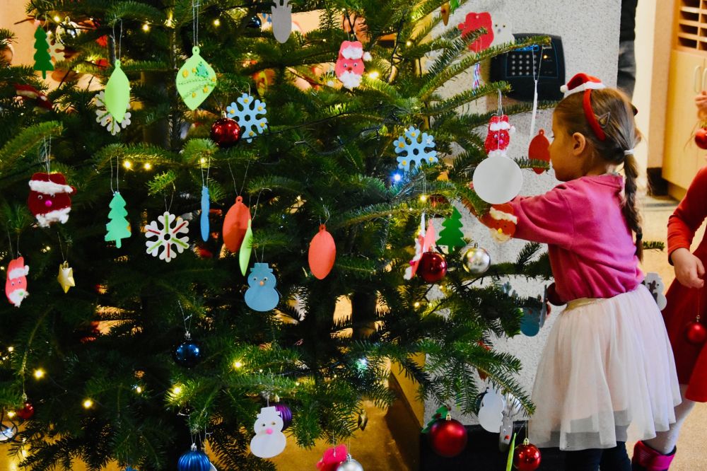 Mali artyści z Cisownicy udekorowali choinkę w Urzędzie Gminy