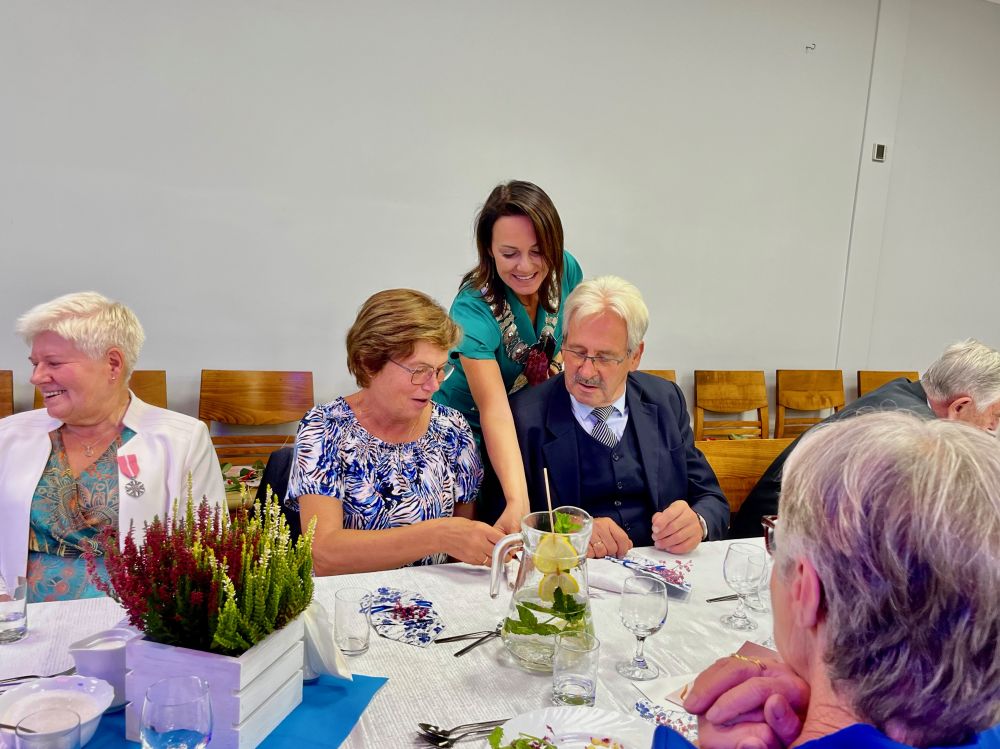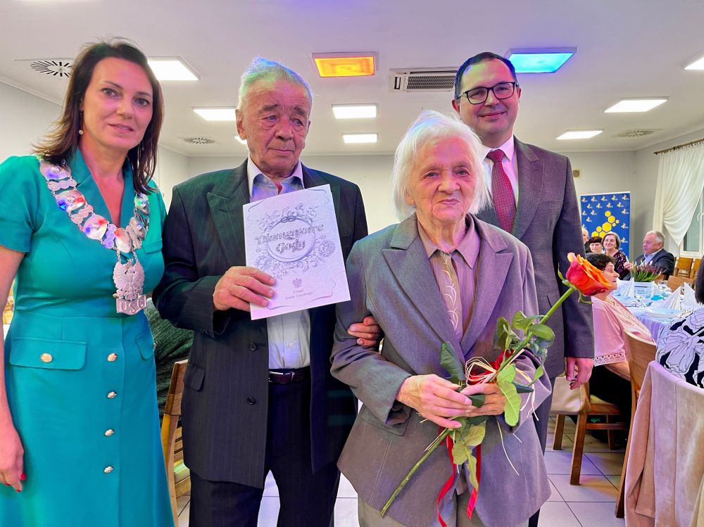 – W świecie, w którym tak wiele i tak szybko się zmienia, historia Waszego małżeństwa jest świadectwem tego, co naprawdę ważne w życiu. Każdego dnia dajecie nam przykład zaufania, troski i oddania. Jesteście wzorem dla młodych pokoleń, pokazując, jak budować trwałe relacje i jak pielęgnować to, co najcenniejsze, a więc miłość do drugiego człowieka. Dziękuję Wam za ten piękny przykład miłości, a także za Waszą obecność w naszej wspólnocie. To dzięki Wam życie społeczne w gminie Goleszów opiera się na solidnych fundamentach takich jak praca, wiara, wzajemne zrozumienie i odpowiedzialność. Dziękuję również za to, że przypominacie nam, iż małżeństwo to codzienna praca, cierpliwość, uśmiech, wyrozumiałość i obecność w życiu drugiego człowieka – mówiła podczas uroczystości Sylwia Cieślar, wójt gminy Goleszów.