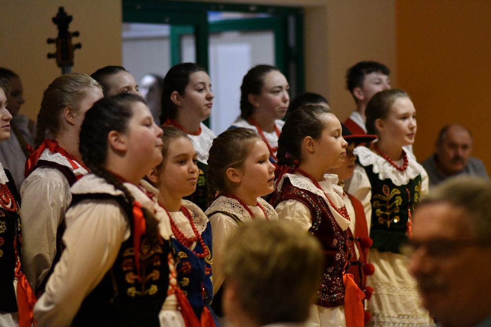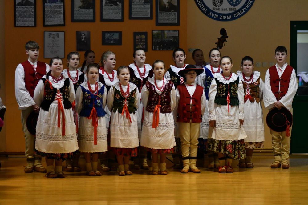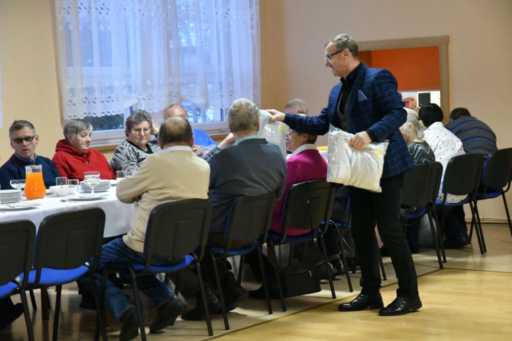 Dla uczestników spotkania przygotowano drobne upominki, które były miłym akcentem i wyrazem wdzięczności za ich obecność oraz zaangażowanie w życie lokalnej społeczności. Szczególną niespodzianką okazał się występ Zespołu Pieśni i Tańca Goleszów. Artyści zaprezentowali barwny program artystyczny, pełen tradycyjnych pieśni i tańców ludowych, nawiązujących do bogatej kultury i tradycji regionu. Występ spotkał się z bardzo ciepłym przyjęciem, wywołując wiele uśmiechów i wzruszeń, a także stanowił piękne dopełnienie wspólnie spędzonego popołudnia.