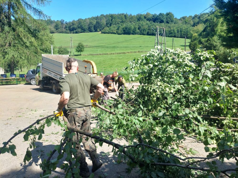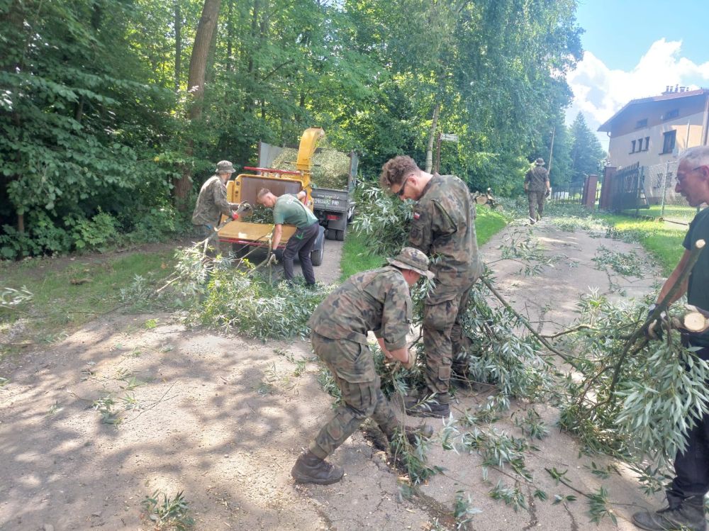 Prace związane z usuwaniem skutków intensywnych opadów deszczu na terenie Gminy Goleszów systematycznie postępują. Liczba zgłoszeń od mieszkańców jest jednak bardzo duża, dlatego nadal korzystamy ze wsparcia żołnierzy Wojsk Obrony Terytorialnej, którzy stanowią ogromne wzmocnienie dla naszych gminnych służb. Dziś tj. w czwartek, 31 lipca żołnierzy 13. Śląskiej Brygady Obrony Terytorialnej można spotkać przede wszystkim na terenie Cisownicy.