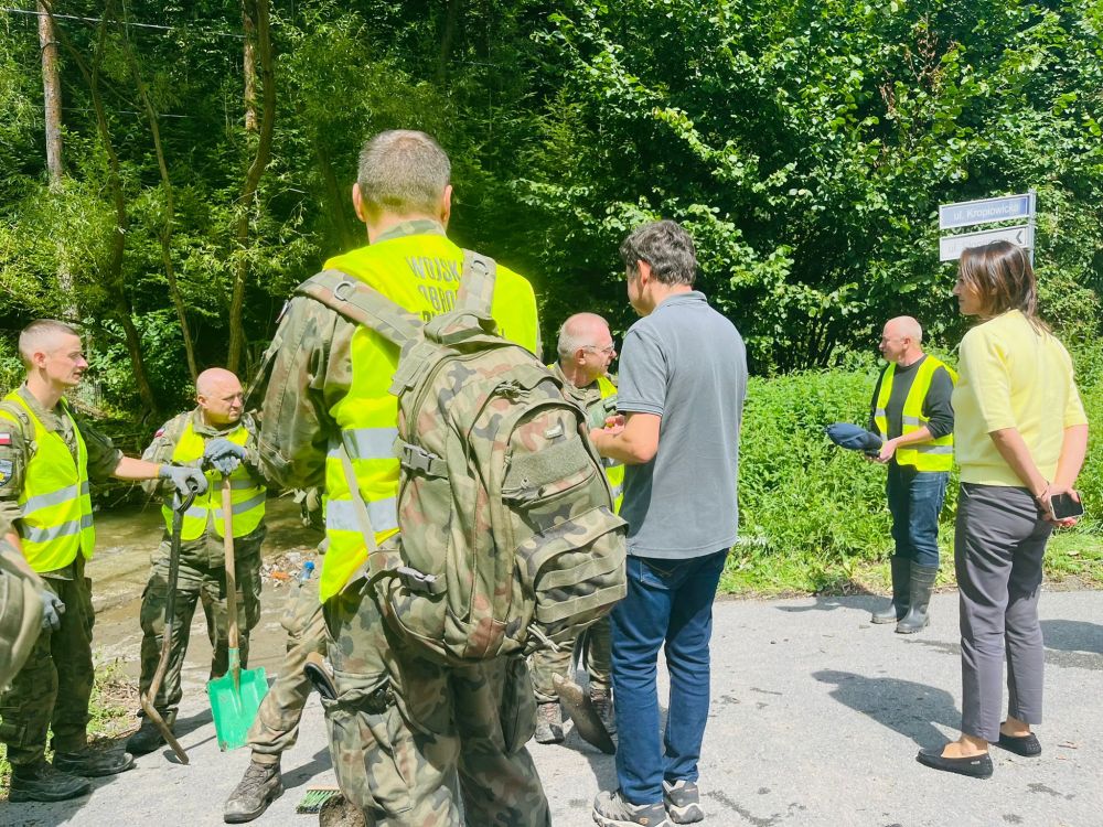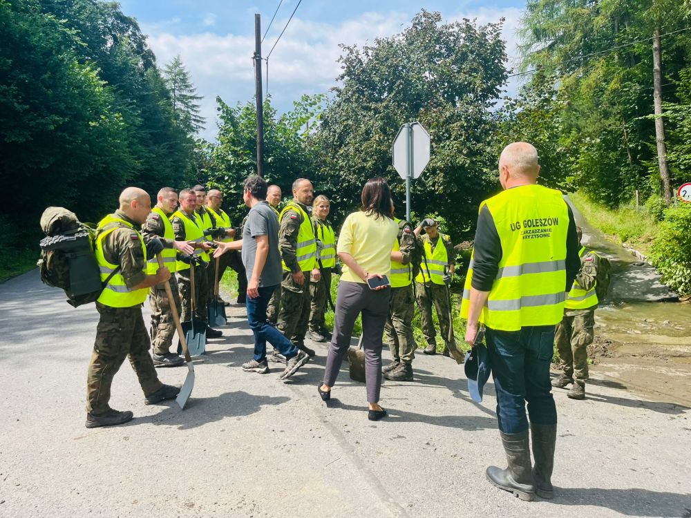 Wojewoda spotkał się również z żołnierzami 13. Śląskiej Brygady Obrony Terytorialnej, którzy kolejny dzień pomagali w usuwaniu skutków powodzi na terenie gminy. Podczas wizyty wojewoda miał także okazję porozmawiać z mieszkańcami Goleszowa, którzy przekazali mu naoczne relacje z przebiegu sytuacji powodziowej oraz opowiedzieli o trudnościach, z jakimi przyszło im się zmierzyć po ustąpieniu wielkiej wody.