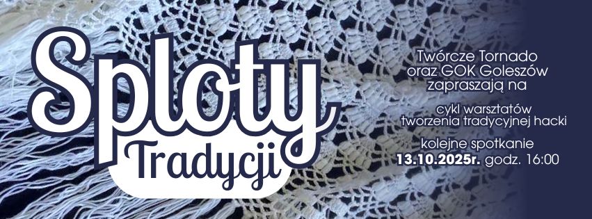 Grupa nieformalna Twórcze Tornado oraz Gminny Ośrodek Kultury w Goleszowie zapraszają do udziału w bezpłatnych warsztatach tworzenia tradycyjnej hacki organizowanych w ramach projektu "Sploty Tradycji". Trzecie spotkanie odbędzie się 13 października o godz. 16.00 w tymczasowej siedzibie Gminnego Ośrodka Kultury w Goleszowie (OSP Goleszów, ul. Szkolna 7). Informacje na temat wolnych miejsc na warsztatach można uzyskać pod numerem telefonu: 573 444 553.